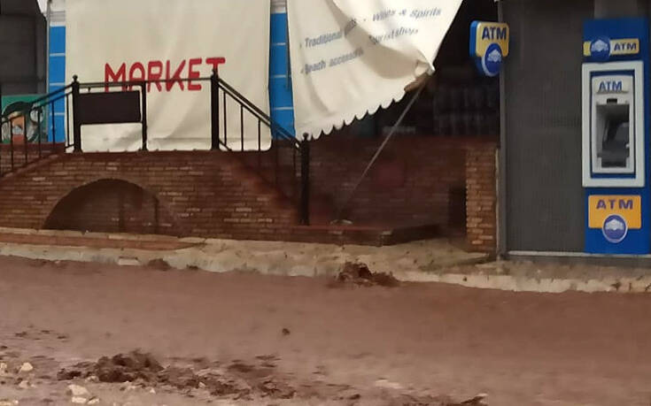 Στη Αγία Ευφημία, από τον χείμαρρο που δημιουργήθηκε υπήρξε εισροή υδάτων σε καταστήματα.