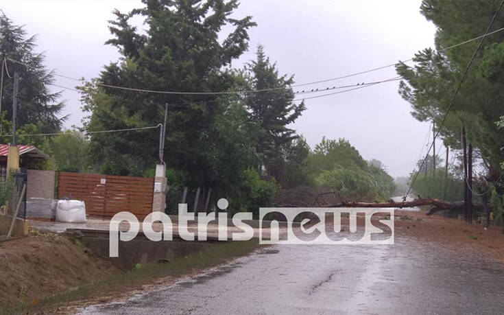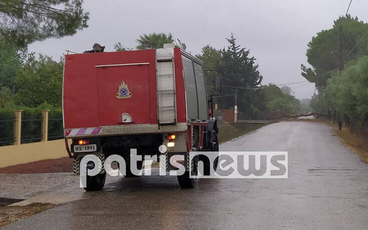 Στα σημεία αυτά βρίσκονται οχήματα της Πυροσβεστικής Υπηρεσίας Αμαλιάδας για την απομάκρυνση των δέντρων από τους δρόμους.
