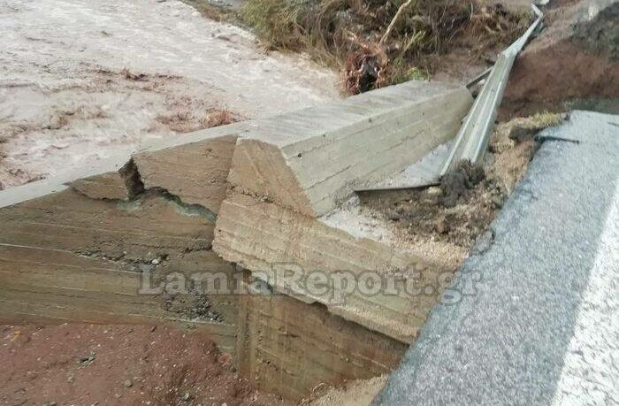 Στα δύο κόπηκε η εθνική οδός Λαμίας – Καρπενησίου, έπειτα από υποχώρηση γέφυρας στο ύψος του Παλιουρίου Καστρίου.