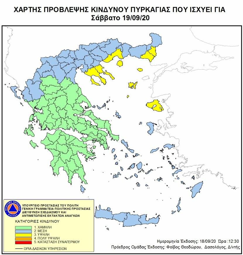 Σύμφωνα με το Χάρτη Πρόβλεψης Κινδύνου Πυρκαγιάς που εκδίδει η Γενική Γραμματεία Πολιτικής Προστασίας του Υπουργείου Προστασίας του Πολίτη, προβλέπεται υψηλός κίνδυνος πυρκαγιάς (κατηγορία κινδύνου 3) σε Έβρο, Καβάλα, Χαλκιδική, Άγιο Όρος, Θάσο, Λήμνο, Σαμοθράκη και Λέσβο.