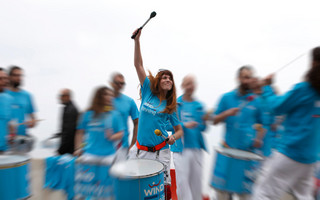 Οι δυνατοί ήχοι των QUILOMBO στα χρώματα της WIND, υποδέχονταν όλους τους δρομείς λίγο πριν το σημείο τερματισμού στο Λευκό Πύργο, ξεσηκώνοντας τους με τα κρουστά και το δυναμικό χορό τους.