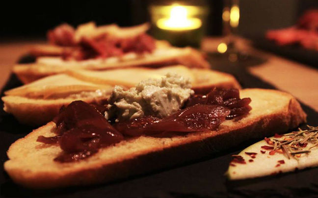 Προτιμήστε, κατσικίσιο τυρί με κροκάν αμυγδάλου και μαρμελάδα μούρων, μπρουσκέτες με ροκφόρ και καραμελωμένα κρεμμύδια, αρωματισμένες γαρίδες με κρέμα lime.