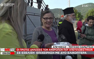 Μια ηλικιωμένη, ο παπάς σύζυγός της, η έγκυος κόρη της και η μόλις 1,5 έτους εγγονή τους είναι οι πρώτοι κάτοικοι που απεγκλωβίστηκαν από την Οξυά, το χωριό στην Καρδίτσα που έχει αποκοπεί μετά την καταστροφή που προκάλεσε η κακοκαιρία Ιανός, σύμφωνα με τον ΣΚΑΪ.