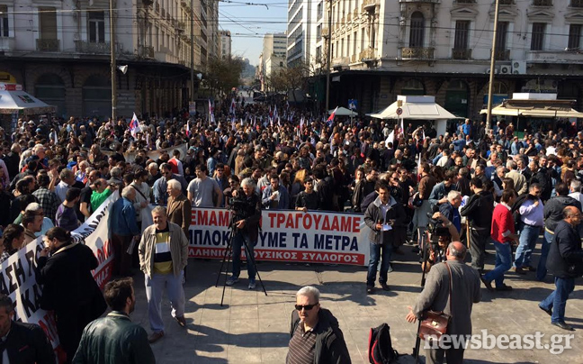 Οι διαδηλωτές έχουν ήδη αρχίσει να συγκεντρώνονται για να διαμαρτυρηθούν για τα μέτρα της κυβέρνησης και τις απολύσεις που γίνονται ενώ μετά τις ομιλίες θα ακολουθήσει ξεχωριστή πορεία προς τη Βουλή.