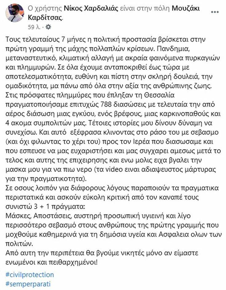 Με ανάρτησή του στο Facebook ο κ. Χαρδαλιάς αναφέρθηκε στο βίντεο λέγοντας μεταξύ άλλων: