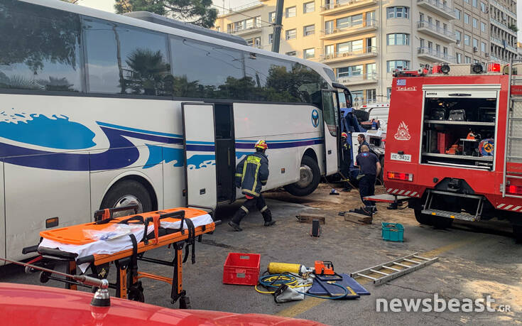 Τιτάνια ήταν η μάχη των Πυροσβεστών για να βγάλουν από το πούλμαν τον οδηγό που επί 3 ώρες είχε εγκλωβιστεί μέσα στο λεωφορείο μετά από τροχαίο στην Ακτή Μιαούλη στον Πειραιά.