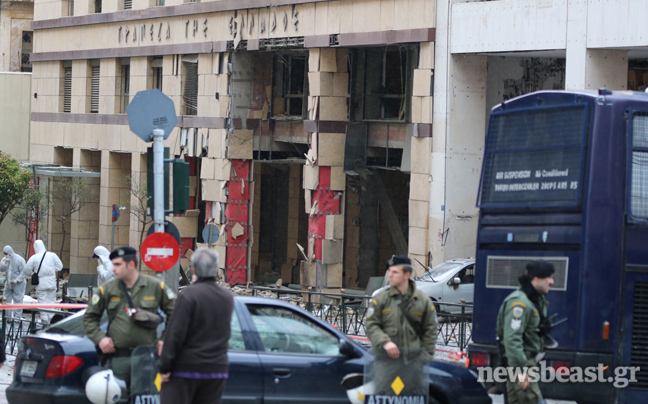 Οι αστυνομικοί της Αντιτρομοκρατικής πλέον ερευνούν για στοιχεία μόνο επί της οδού Αμερικής, όπου νωρίς το πρωί εξερράγη παγιδευμένο αυτοκίνητο, το οποίο ήταν σταθμευμένο έξω από την Τράπεζα της Ελλάδος.