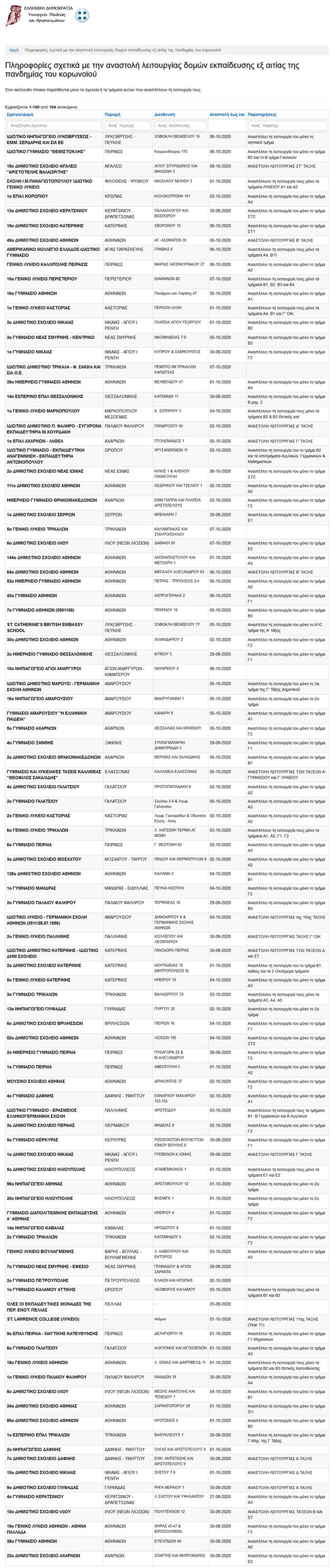 Άλλα 10 σχολεία προστέθηκαν από χθες στη λίστα του υπουργείου Παιδείας (τμήματα ή ολόκληρες μονάδες) σε αυτά που έχουν κλείσει λόγω του κορονοϊού, φτάνοντας συνολικά τα 104.