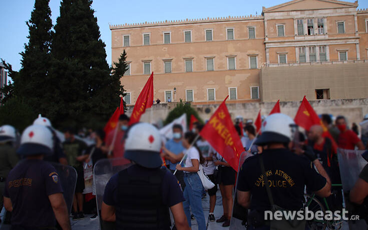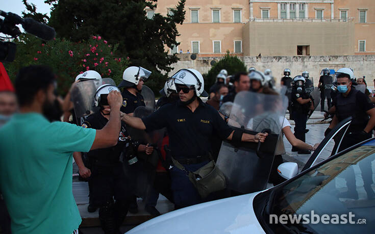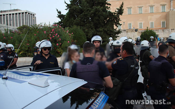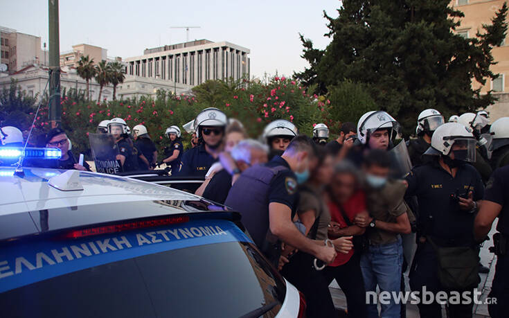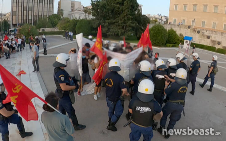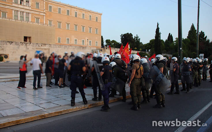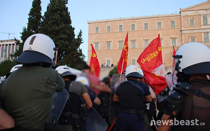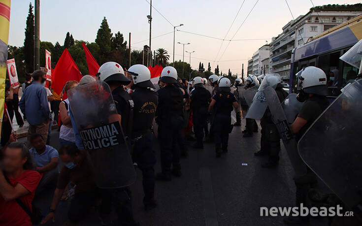 Σύμφωνα με πληροφορίες οι διαδηλωτές είναι περικυκλωμένοι από δυνάμεις των ΜΑΤ στο πεζοδρόμιο επί της Αμαλίας, έξω από τη Βουλή.