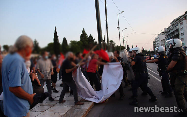 Επεισόδια σημειώνονται αυτή την ώρα μπροστά από το μνημείο του Άγνωστου Στρατιώτη μεταξύ των ΜΑΤ και ομάδας διαδηλωτών.