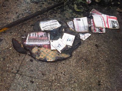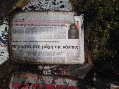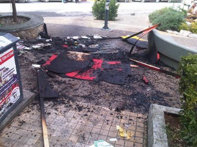 Στόχος εμπρηστών έγινε το κεντρικό εκλογικό περίπτερο της «ΑΝΤΑΡΣΥΑ» στα Προπύλαια-Βιβλιοθήκη στην Πανεπιστημίου. Η πυροσβεστική επενέβη και έσβησε την φωτιά ενώ μετά την κατάσβεση διμοιρία των ΜΑΤ προστάτευε τον χώρο μέχρι να έρθει ανακριτικό της πυροσβεστικής. Το περιστατικό συνέβη χτες το πρωί, ημέρα εθνικής επετείου της 28ης Οκτωβρίου.
