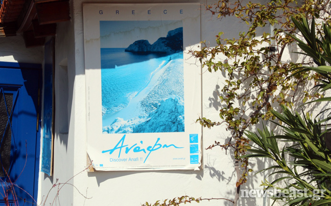 Οι αφίσες από την Ανάφη βρίσκονται παντού, δείχνοντας την προέλευση αυτού του μικρού θαύματος στην «καρδιά» της τσιμεντούπολης.