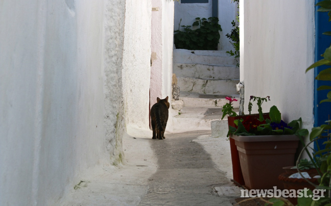 Οι ασβεστωμένοι τοίχοι και οι έντονα βαμμένες πόρτες και παράθυρα, από την άλλη, σε κάνουν προς στιγμή να νομίζεις ότι πήρες το καράβι για τα νησιά των Κυκλάδων.