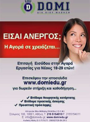 Το Κέντρο Δια Βίου Μάθησης Επιπέδου 2 D.O.M.I. είναι στην ευχάριστη θέση να ενημερώσει τα μέλη και τους φίλους του για μια μοναδική ευκαιρία κατάρτισης και απασχόλησης 50.000 νέων ανέργων.