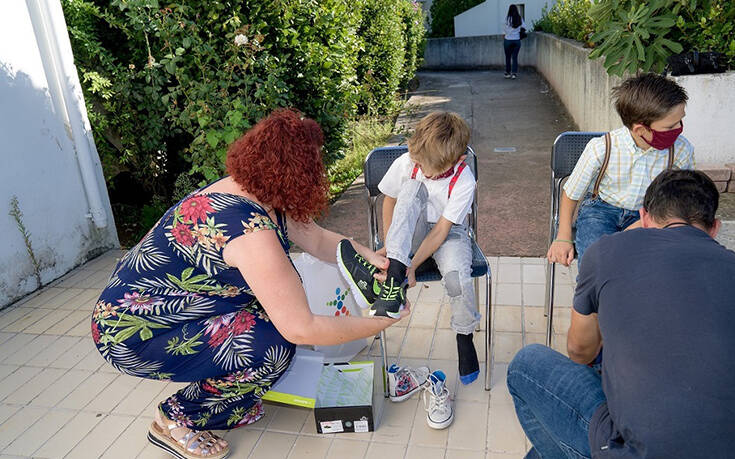 Παιδιά του Παιδικού Χωριού SOS Πλαγιαρίου δοκιμάζουν τα νέα παπούτσια τους