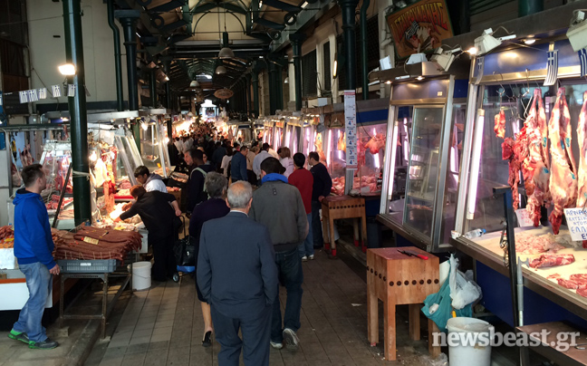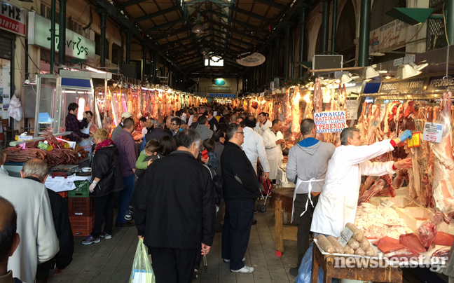 Για τα ψώνια της τελευταίας στιγμής σπεύδουν στη Βαρβάκειο αγορά οι καταναλωτές που δεν πρόλαβαν να πάρουν κρέας για το πασχαλινό τραπέζι.