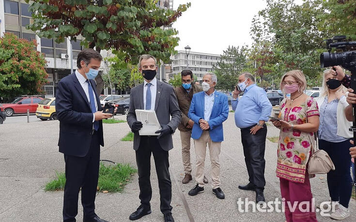 Το νέο εξεταστήριο covid στο αρχοντικό Πετρίδη επί της οδού Αναγεννήσεως στη Θεσσαλονίκη, επισκέφθηκε λίγο μετά τις 11:00 το πρωί της Δευτέρας, ο πρόεδρος του ΕΟΔΥ, Παναγιώτης Αρκουμανέας, παρουσία του δημάρχου Θεσσαλονίκης, Κωνσταντίνου Ζέρβα.