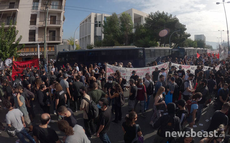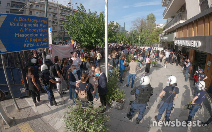 Ήδη, από τις 9 το πρωί, αναρτήθηκαν τα πρώτα πανό μπροστά από το κτίριο και συγκεκριμένα από την πλευρά της λεωφόρου Αλεξάνδρας.