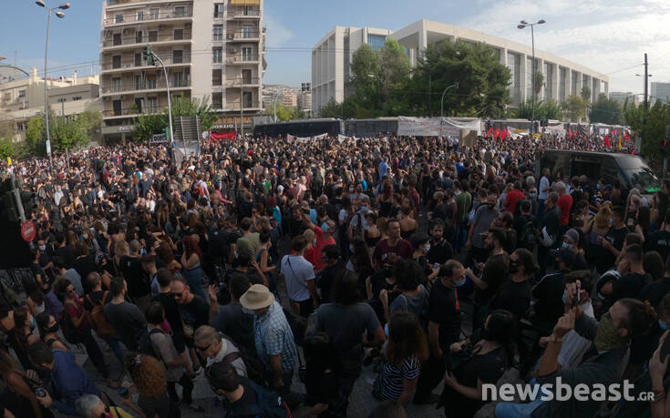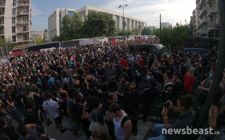 Πληθαίνουν όλο και περισσότερο οι διαδηλωτές και οι διαδηλώτριες που συγκεντρώνονται έξω από το Εφετείο, ενόψει της απόφασης για τη Χρυσή Αυγή.