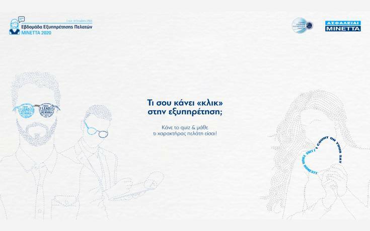 Αν σε βάλαμε σε σκέψεις ήρθε η ώρα να σε βοηθήσουμε στο να βρεις και τις απαντήσεις. Με αφορμή την εβδομάδα εξυπηρέτησης πελατών (5-10 Οκτωβρίου) η Minetta ασφαλιστική έχει δημιουργήσει ένα ιδιαίτερα ενδιαφέρον quiz με σκοπό να μάθεις τι χαρακτήρας πελάτη είσαι. Αφιέρωσε λίγο χρόνο να απαντήσεις σε μόλις πέντε ερωτήσεις και ανακάλυψε τι σου κάνει «κλικ» στην εξυπηρέτηση.