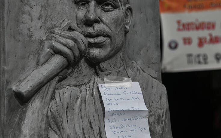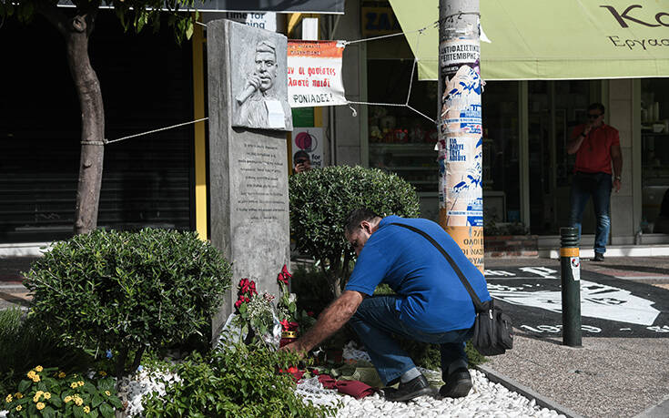 Μετά την απόφαση για την καταδίκη της Χρυσής Αυγής συγγενείς, φίλοι και απλός κόσμος άφησε λουλούδια, αλλά και ένα σημείωμα στο μνημείο του Παύλου Φύσσα στο Κερατσίνι.