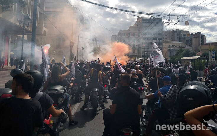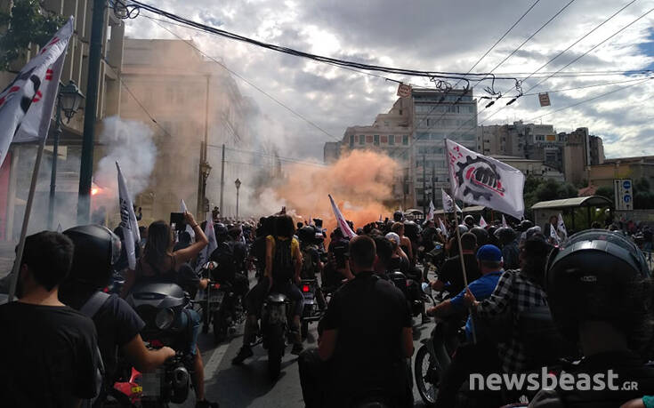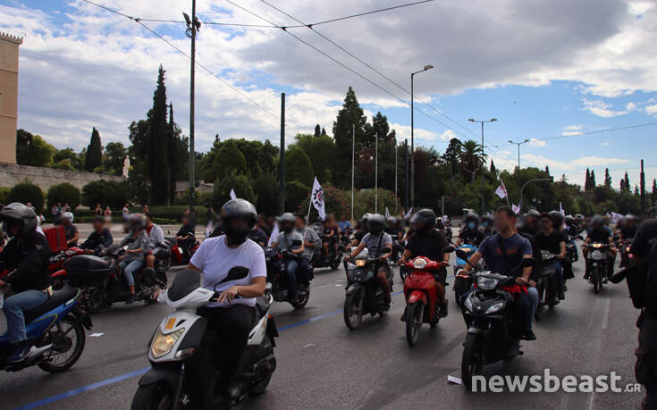 Μεγάλη είναι η συμμετοχή στη μοτοπορεία που πραγματοποίησαν μεταφορείς, διανομείς και υπάλληλοι εξωτερικών εργασιών, στα πλαίσια της σημερινής (08/10) απεργίας τους. Συγκεκριμένα, περίπου 1.000 δίκυκλα πήραν μέρος στην κινητοποίηση στο κέντρο της Αθήνας.