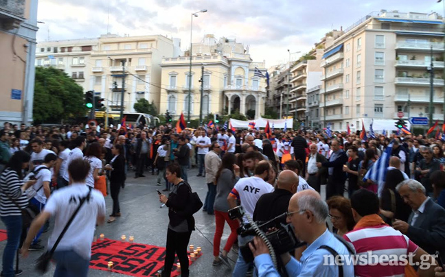 Συγκέντρωση πραγματοποιούν Αρμένιοι έξω από την τουρκική πρεσβεία με αφορμή την επέτειο της γενοκτονίας.