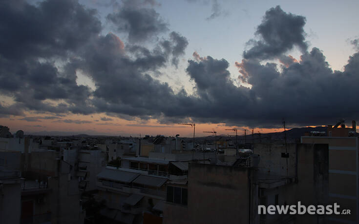 Ο ουρανός όπως μαρτυρούν τα καρέ του newsbeast.gr έχει ήδη «σκοτεινιάσει» και τα σύννεφα έχουν σκεπάσει την Αττική ενώ σε κάποια σημεία η ορατότητα είναι μηδενική.