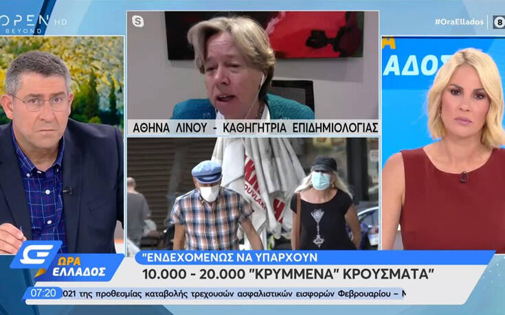 Αίσθηση προκαλεί η δήλωση της καθηγήτρια επιδημιολογίας Αθηνάς Λινού που είπε ότι υπάρχουν «10.000-20.000 κρούσματα κορονοϊού ενεργά, τα οποία δεν γνωρίζουμε, καθώς είναι είτε ασυμπτωματικά, είτε έχουν ήπια συμπτώματα, είτε κρυμμένα από ανθρώπους που δεν θέλουν να εξεταστούν».