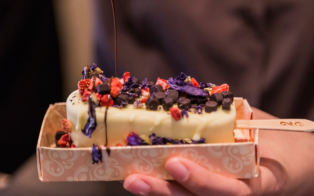 Αποκλειστικά για το Magic Pleasure Store της Αθήνας, οι επισκέπτες έχουν τη δυνατότητα να επιλέξουν και γαρνιτούρες που δημιουργήθηκαν με την επιμέλεια του chef-pâtissier Ντίνου Φωτεινάκη, όπως crumble μπισκότου με ελληνικό καφέ και καρύδι.