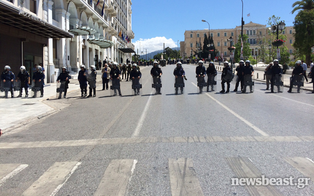 Η κυκλοφορία στο κέντρο έχει διακοπεί ενώ ο σταθμός του μετρό στο Σύνταγμα είναι κλειστός και οι συρμοί περνούν χωρίς να κάνουν στάση.