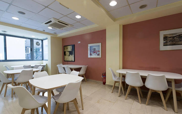 Άποψη του χώρου της τραπεζαρίας της “Εστίας των Αθηνών” μετά τις εργασίες ανακαίνισης