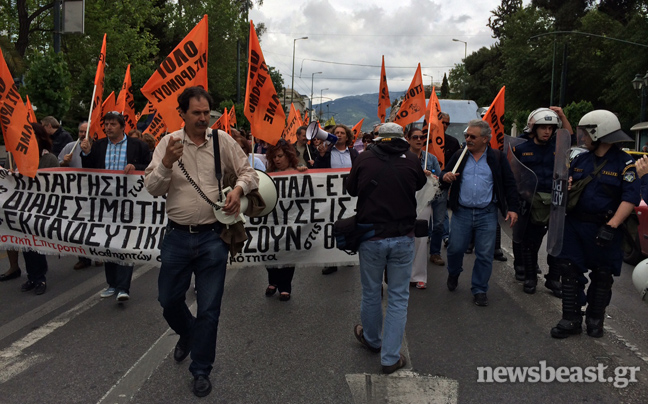 Εκεί οι διαδηλωτές παρέδωσαν ψήφισμα διαμαρτυρίας και ξεκίνησαν την πορεία τους προς τη Βουλή.