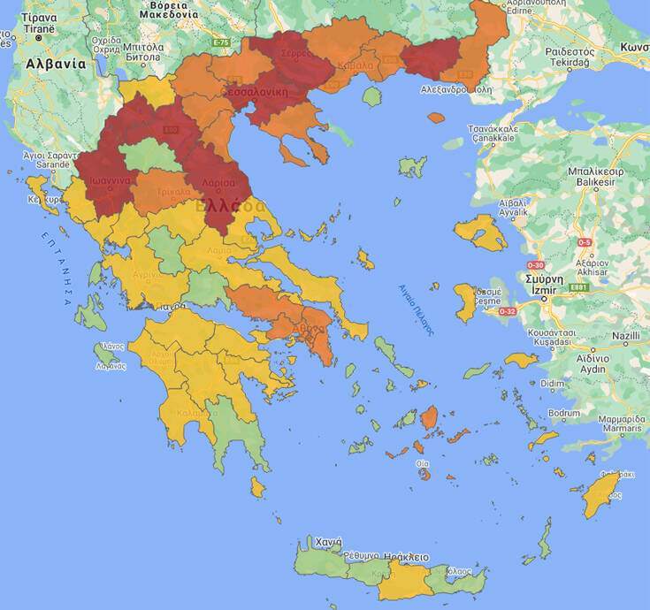 Ο χάρτης υγειονομικής ασφάλειας της Πολιτικής Προστασίας άλλαξε από τις 6 το πρωί καθώς σε lockdown περνούν από σήμερα Περιφέρειες Θεσσαλονίκης, Ροδόπης και Λάρισας.