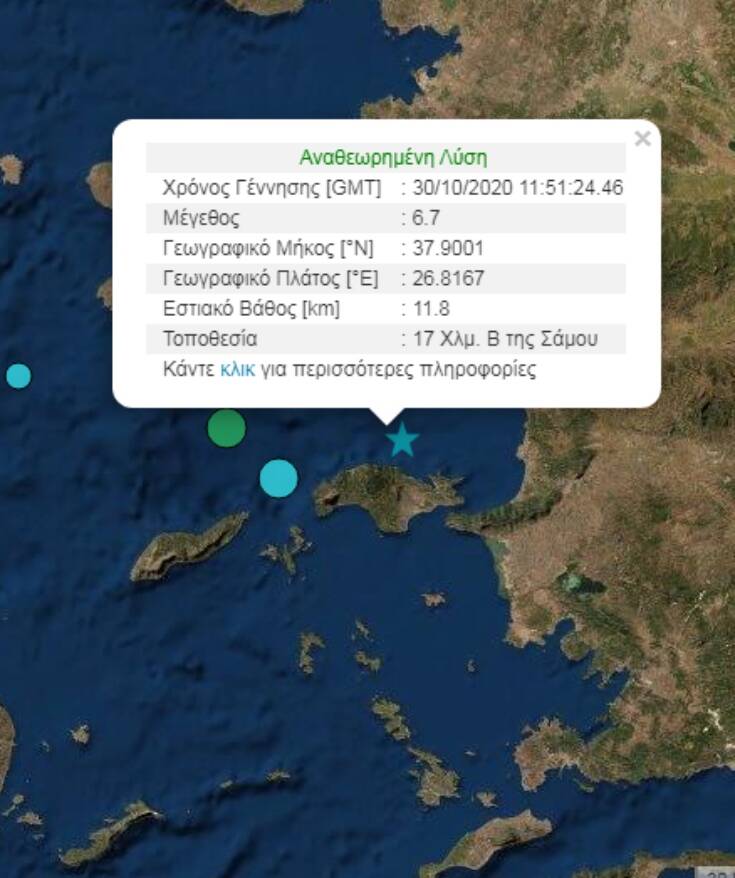 Το Γεωδυναμικό Ινστιτούτο έχει υπολογίσει τον σεισμό στα 6,7 Ρίχτερ, με εστιακό βάθος στα 11,8 χιλιόμετρα.