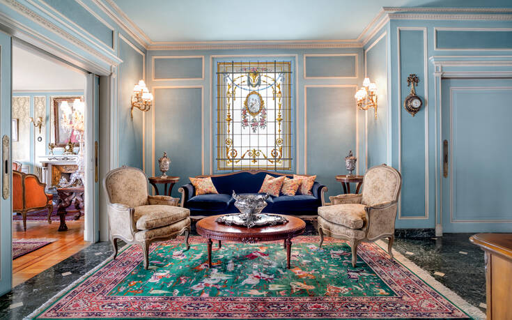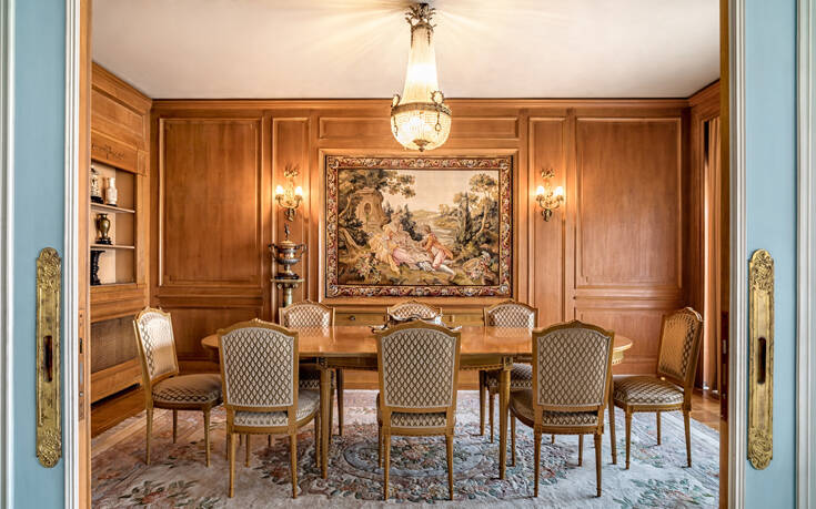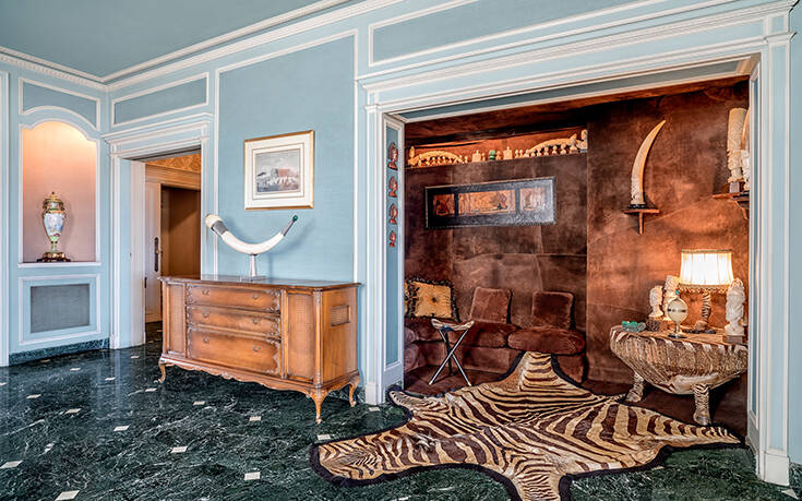 Σε αυτήν προσθέστε το γεγονός ότι βρίσκεται «σκαρφαλωμένο» στον 6ο όροφο ενός πολύ καλά διατηρημένου κτιρίου καθώς και τα 400 τ.μ. στα οποία συναντώνται τέσσερα υπνοδωμάτια με διπλά κρεβάτια με ψηλές οροφές και περίτεχνα ντεκόρ, τρία μπάνια, βιβλιοθήκη, ένα τεράστιο σαλόνι με έπιπλα που παραπέμπουν σε παλάτι, καθώς και μαρμάρινα δάπεδα που προσδίδουν στο διαμέρισμα επιπλέον αριστοκρατικό χαρακτήρα και βασιλική αίσθηση.