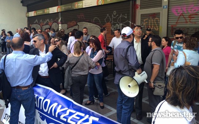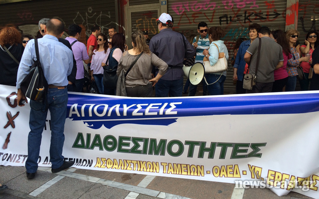 Συγκέντρωση διαμαρτυρίας έξω από το υπουργείο Εργασίας πραγματοποιούν αυτή την ώρα εργαζόμενοι στα ασφαλιστικά ταμεία και στον ΟΑΕΔ, ενόψει της λήξης της οκτάμηνης περιόδου της διαθεσιμότητας των συναδέλφων τους.