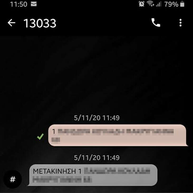 Τα μηνύματα του 13033 αφορούν αποκλειστικά σε επιβεβαίωση κατ’εξαιρεση μετακίνησης. Το 13033 δεν στέλνει μηνύματα που παραπέμπουν σε εγκατάσταση λογισμικού ή σε ιστοσελίδα άλλη από το forma.gov.gr