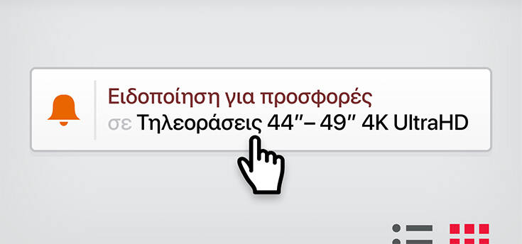 Η αναζήτηση είναι πάρα πολύ εύκολη, το μόνο που έχεις να κάνεις είναι να προσθέσεις προϊόντα στα “θέλω” σου στο BestPrice ή/και να ενεργοποιήσεις την “ειδοποίηση για προσφορές” για ολόκληρες κατηγορίες προϊόντων, συγκεκριμένες αναζητήσεις ή προϊόντα με συγκεκριμένα χαρακτηριστικά.