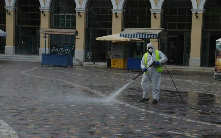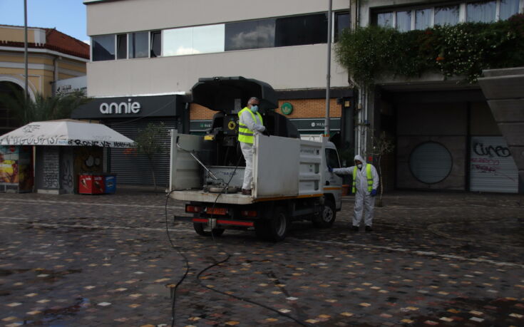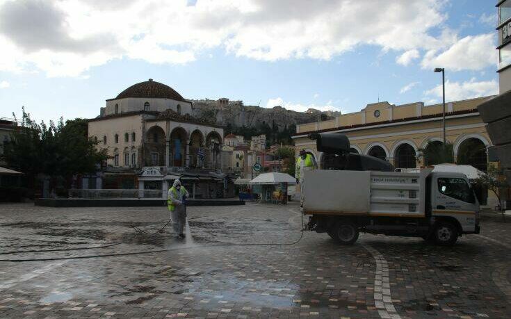 Μάλιστα, το γεγονός ότι δεν κυκλοφορεί κόσμος κάνει ευκολότερο τη ζωή των συνεργείων του Δήμου Αθηναίων που έχουν ξεκινήσει εργασίες για απολύμανση της πλατείας.