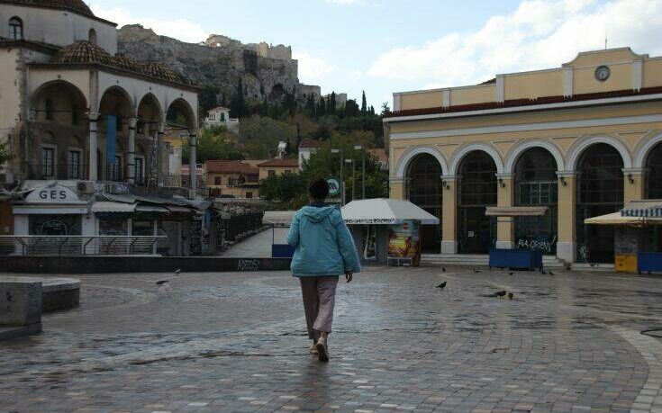 Σε ρυθμούς lockdown κινείται το κέντρο της Αθήνας, με το Μοναστηράκι να έχει αδειάσει και να μην θυμίζει σε τίποτα το πολυσύχναστο μέρος που ήταν παλαιότερα.