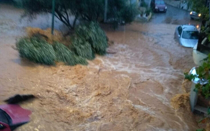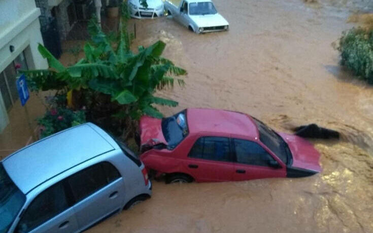 Το σκηνικό του Οκτώβρη επαναλαμβάνεται στον δήμο Χερσονήσου καθώς πλημμύρισαν δρόμοι και παρασύρθηκαν αυτοκίνητα.