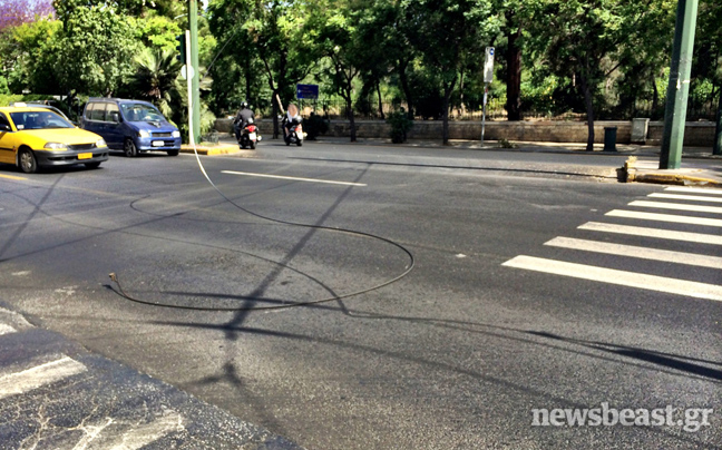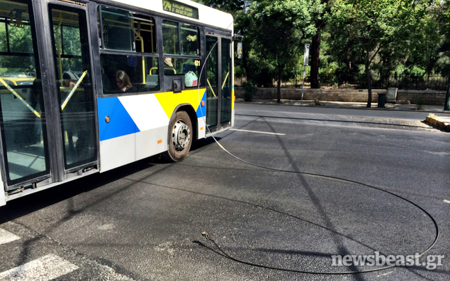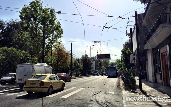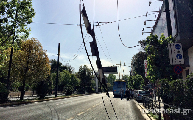 Η ζημιά δημιουργήθηκε μετά από τη διέλευση ενός τρόλεϊ, καθώς τις κεραίες του ξηλώθηκαν τα εναέρια σύρματα.