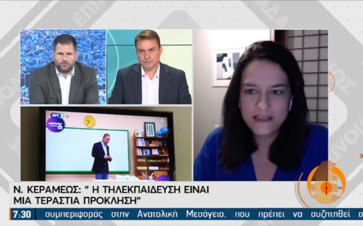 «Αυτή η κρίση, που έχει δραματικές συνέπειες σε όλο τον πλανήτη, οδηγεί την εκπαίδευση σε άλματα ψηφιοποίησης. Μιλώντας στην ΕΡΤ η κα Κεραμέως τόνισε ότι δεν υπάρχει αμφιβολία πως η τηλεκπαίδευση δεν μπορεί να αντικαταστήσει τη δια σώζης διδασκαλία, αλλά αυτή τη στιγμή πρέπει να διαφυλάξουμε τη δημόσια υγεία και παράλληλα να συνεχιστεί η εκπαίδευση των μαθητών» είπε στην ΕΡΤ.