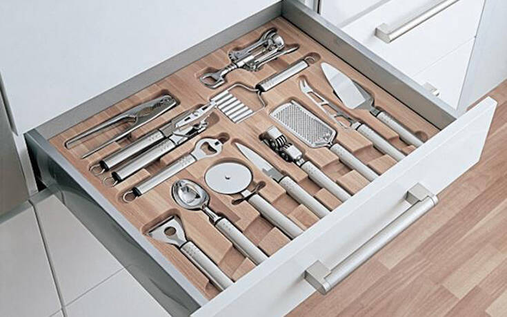 - Οργανώστε τα σκεύη σας: H λέξη οργάνωση είναι συνυφασμένη με τον χώρο της κουζίνας και την εύχρηστη λειτουργία της. Μια καλά οργανωμένη κουζίνα, είναι η απόλυτη ευχαρίστηση για κάθε υποψήφιο «μάγειρα» του σπιτιού. Φανταστείτε τον εαυτό σας πώς αποδίδει όταν χρησιμοποιεί μια πλήρως ακατάστατη κουζίνα, εν αντιθέσει με μια σωστά τακτοποιημένη και οργανωμένη. Χρησιμοποιείστε τον ελεύθερό σας χρόνο, ταξινομώντας τα μαγειρικά σας σκεύη, στη σωστή θέση, προκειμένου να τα χρησιμοποιείτε με ευκολία όταν τα χρειάζεστε, χωρίς να τα…γκρεμίζετε όλα και να χαλάτε την διάθεσή σας! Αξιοποιήστε τα ράφια των κάτω ντουλαπιών της κουζίνας σας, τοποθετώντας τα εκεί, λόγω του βάρους τους, αφήνοντας μικρότερα σκεύη σε ψηλότερα ράφια.