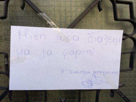 Μάλιστα, φρόντισαν να θυροκολλήσουν και τη σχετική, αυτοσχέδια ανακοίνωση που βλέπετε στη φωτογραφία που έστειλε αναγνώστης στο kozanimedia.