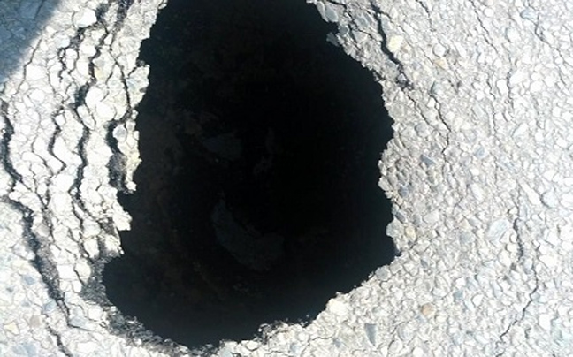 Την τρύπα εντόπισε κάτοικος της πόλης, ο οποίος έβγαλε και φωτογραφίες.