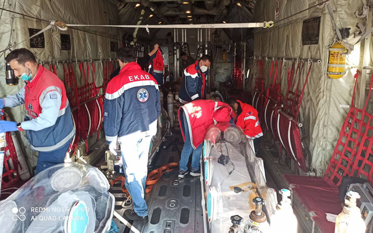 Σήμερα απογειώθηκε C-130 από το αεροδρόμιο της Καβάλας με τρεις γιατρούς και τρεις διασώστες που μεταφέρουν στην Αθήνα τρεις διασωληνωμένους ασθενείς με COVID-19. Οι ασθενείς θα νοσηλευτούν σε Ευαγγελισμό, Σωτηρία και Αττικόν.