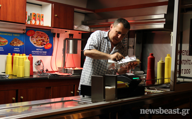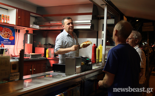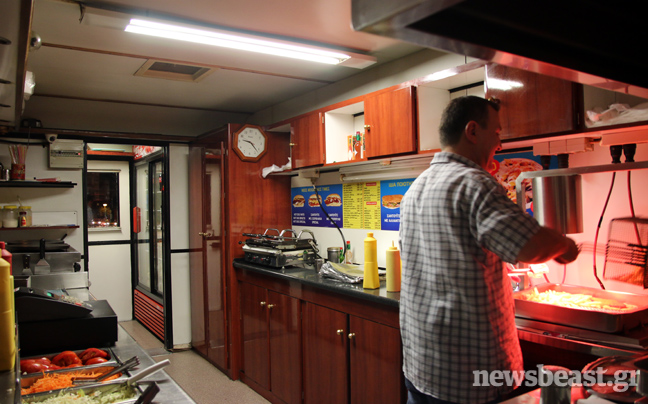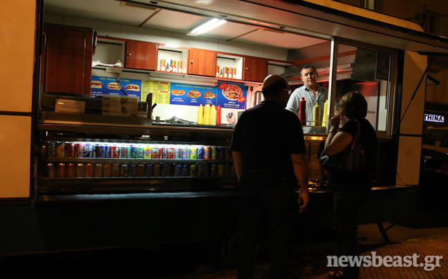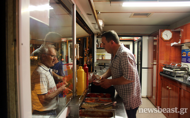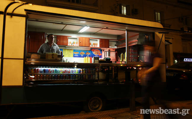 Λειτουργεί από το 1989 και οι ιδιοκτήτες της, φυσιογνωμίες που αν τυχαία συναντήσεις κάτι θα σου θυμίσουν χωρίς να μπορείς να προσδιορίσεις ακριβώς τι, εξυπηρετούν καθ’ όλη τη βάρδιά τους, τους νυχτερινούς πελάτες που καταφθάνουν στο τροχήλατό όχημα…