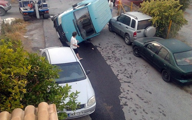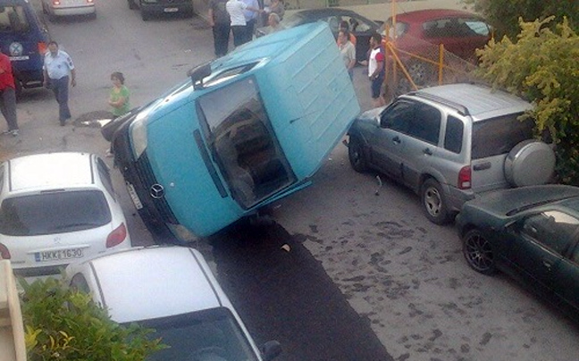 Τα χειρότερα αποφεύχθηκαν τα ξημερώματα όταν ένα φορτηγάκι κάτω από άγνωστες συνθήκες συγκρούστηκε με ένα αυτοκίνητο και κατέληξε σε σταθμευμένα αμάξια στην περιοχή του Μασταμπά στην Κρήτη.